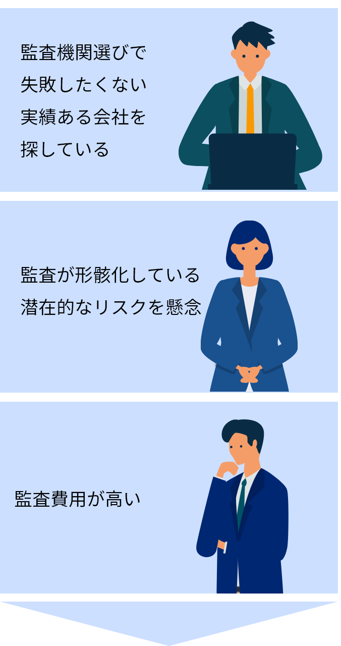 日本国内での実績と、弊社事業規模に対する適切な費用でのご提案が決め手でした。監査計画段階から相談にのっていただき、事前準備、実監査、監査後のフォローまで手厚くご対応いただきました。